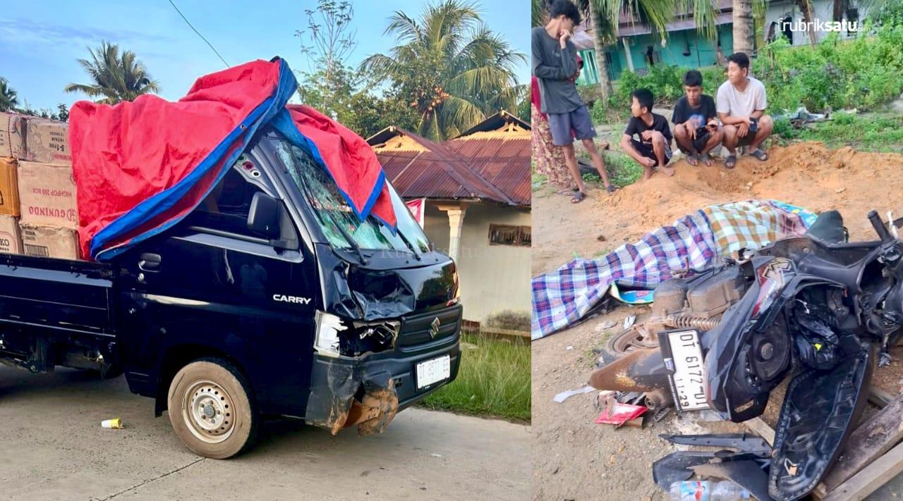 Kecelakaan ini melibatkan sepeda motor Yamaha Mio bernomor polisi DT 6173 DI dengan sebuah mobil pick up bernomor polisi DT 8577 EE.