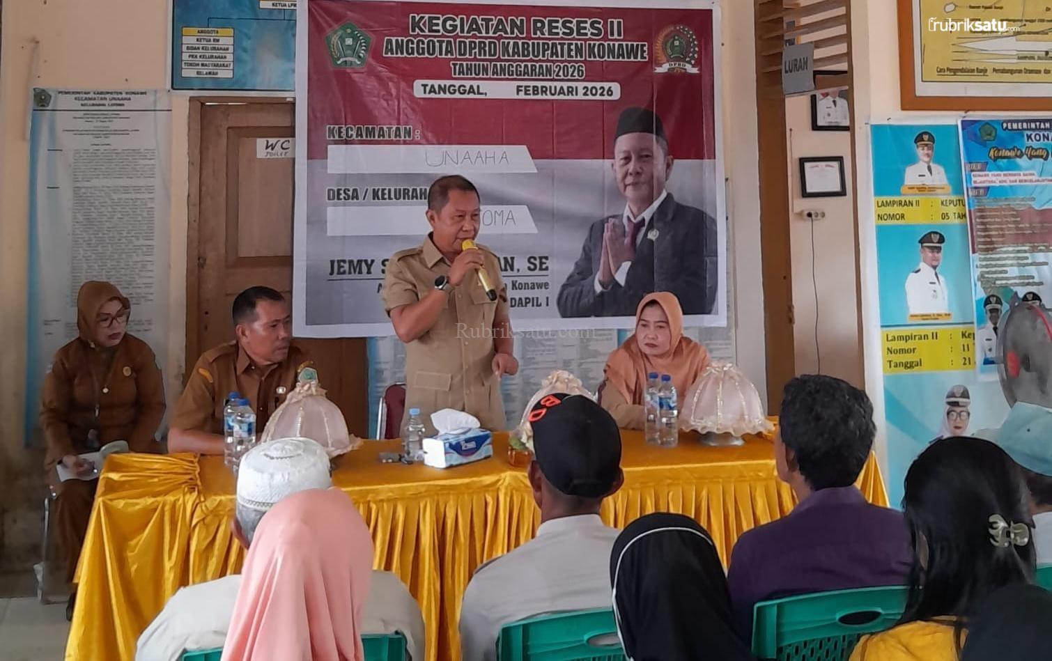 Anggota Komisi III DPRD Konawe, Jemi Syafrul Imran, SE, mengawali agenda resesnya dengan mengunjungi dua titik, yakni Kelurahan Latoma dan Kelurahan Unaaha, Kecamatan Unaaha.