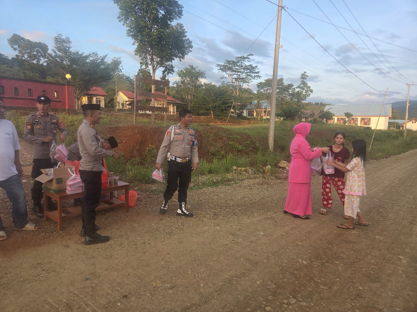 Sebanyak 100 paket takjil dibagikan kepada masyarakat dan para pengendara yang melintas di depan Mako Polsek Routa, Desa Tirowonua, Kecamatan Routa, Kabupaten Konawe.
