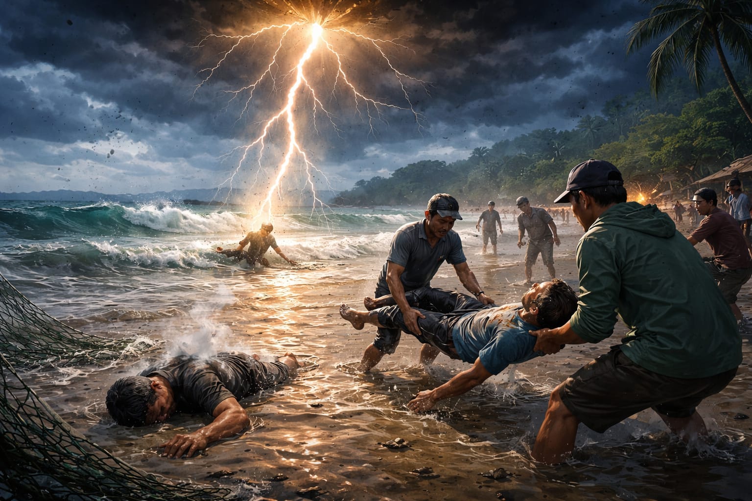 Saat berada di laut, tiba-tiba petir menyambar dengan keras. Saksi selamat, Marwan, mengaku panik setelah melihat kedua rekannya seketika hilang dari pandangan usai sambaran tersebut.